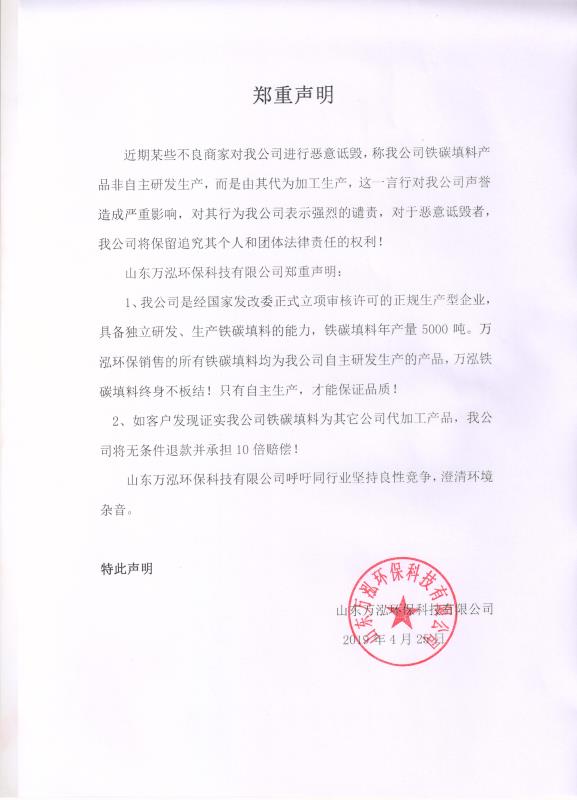 新闻公告: 关于其它厂家未经允许擅自使用“万泓环保”字样的郑重声明